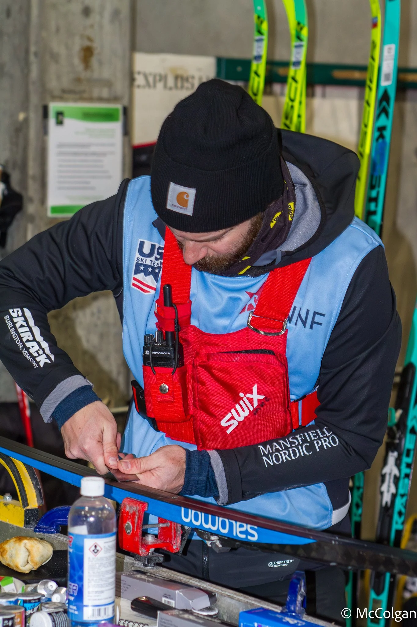Perry has been killing it on the waxing side of things, being adaptable this weekend with some hard windblown klister conditions and making us some baller skis out there. Thanks Perry!