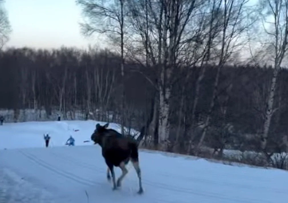 From the Instagram of GRP Coach Pepa Miloucheva, watching from the sidelines as the moose chases boys off the sprint course.